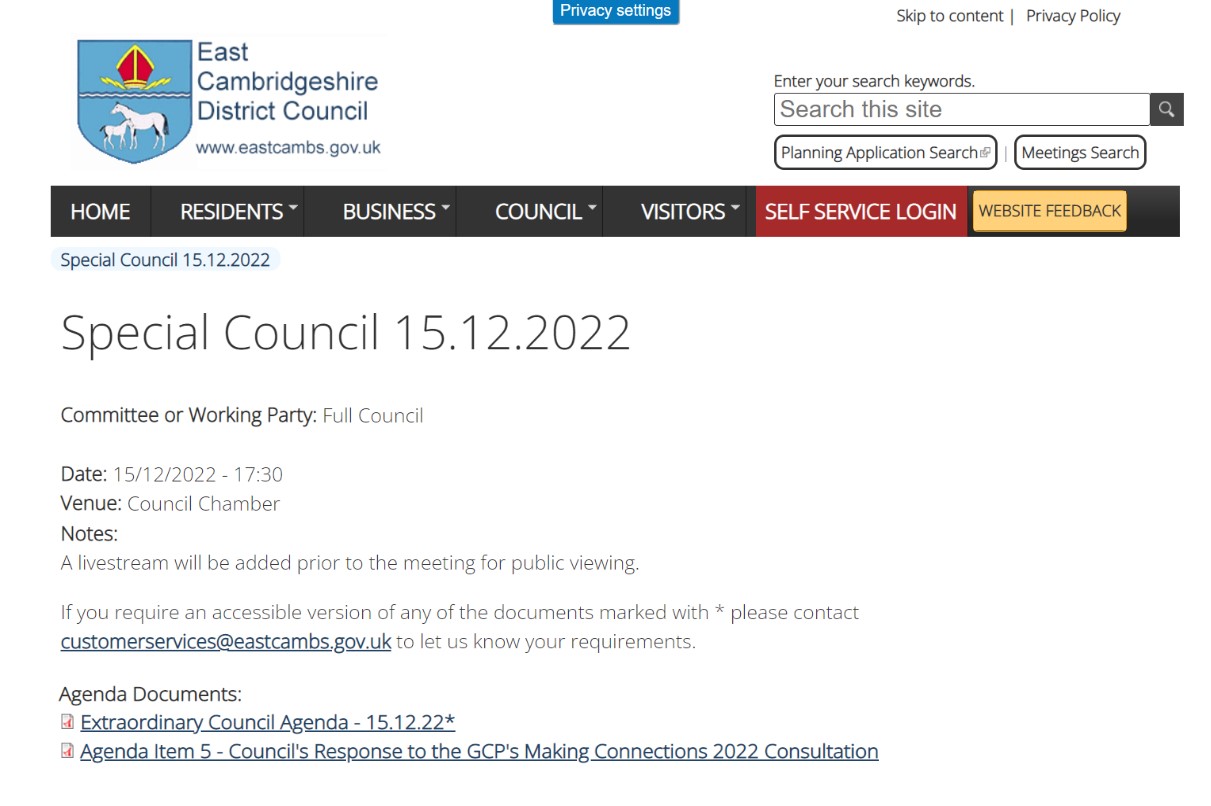 Special Council Meeting At East Cambs to Discuss GCP Proposals.